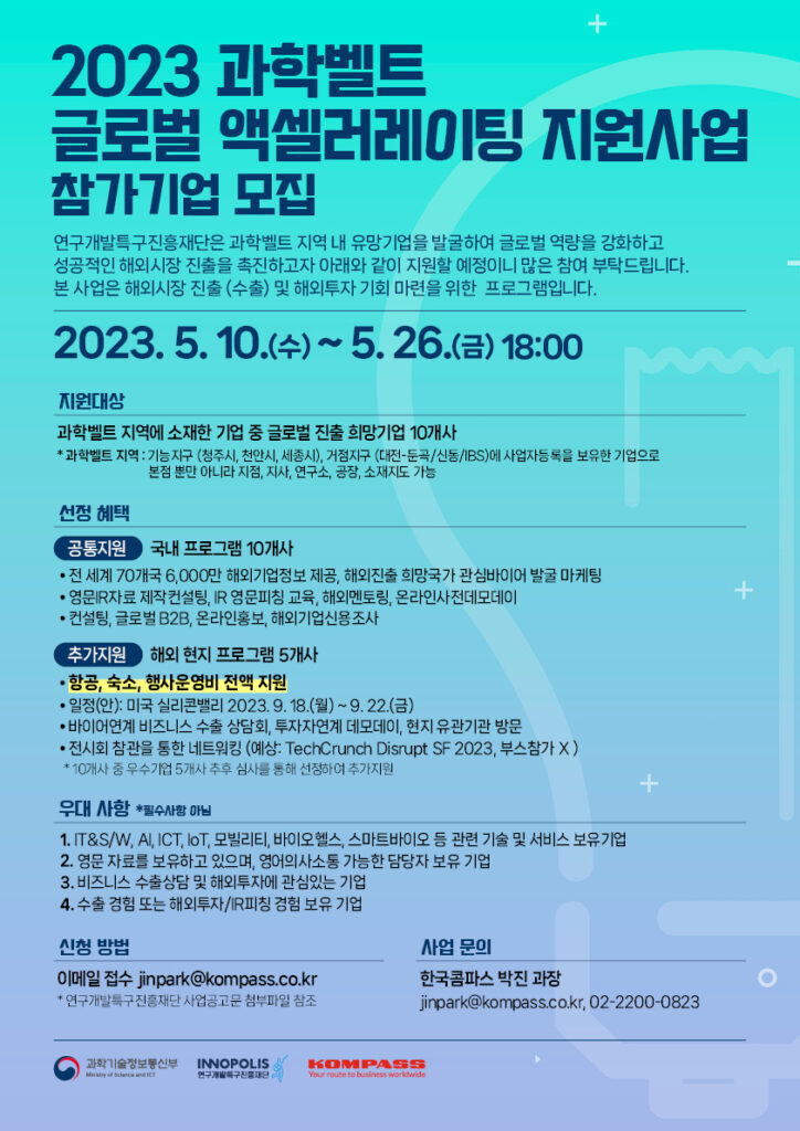 사 업 명 : 2023 과학벨트 글로벌 액셀러레이팅 지원사업