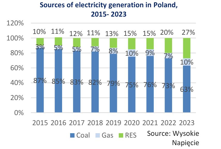 - 2023년 폴란드는 27%라는 역사상 가장 높은 재생 에너지 비중을 기록했습니다.